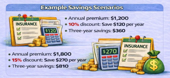 Discounts vary, but many drivers save 5%–15% on premiums.