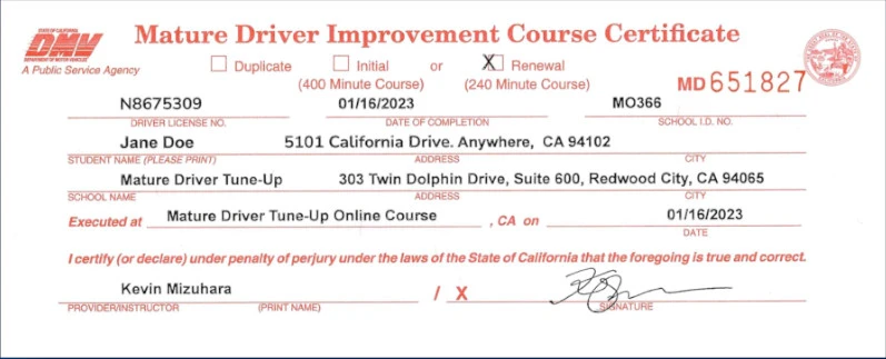 A mature driver improvement course is a state-recognized program designed for drivers age 55 and older. In California, these courses focus on: